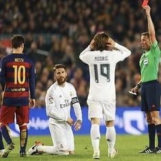Hernández Hernández expulsa a Sergio Ramos en el clásico.
