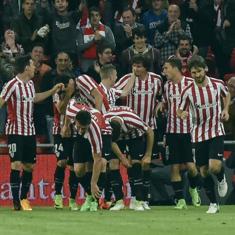 Athletic Club: Kepa; De Marcos, Yeray, Laporte, Balenziaga; San José, Beñat; Williams, Raúl García, Muniain; y Aduriz.