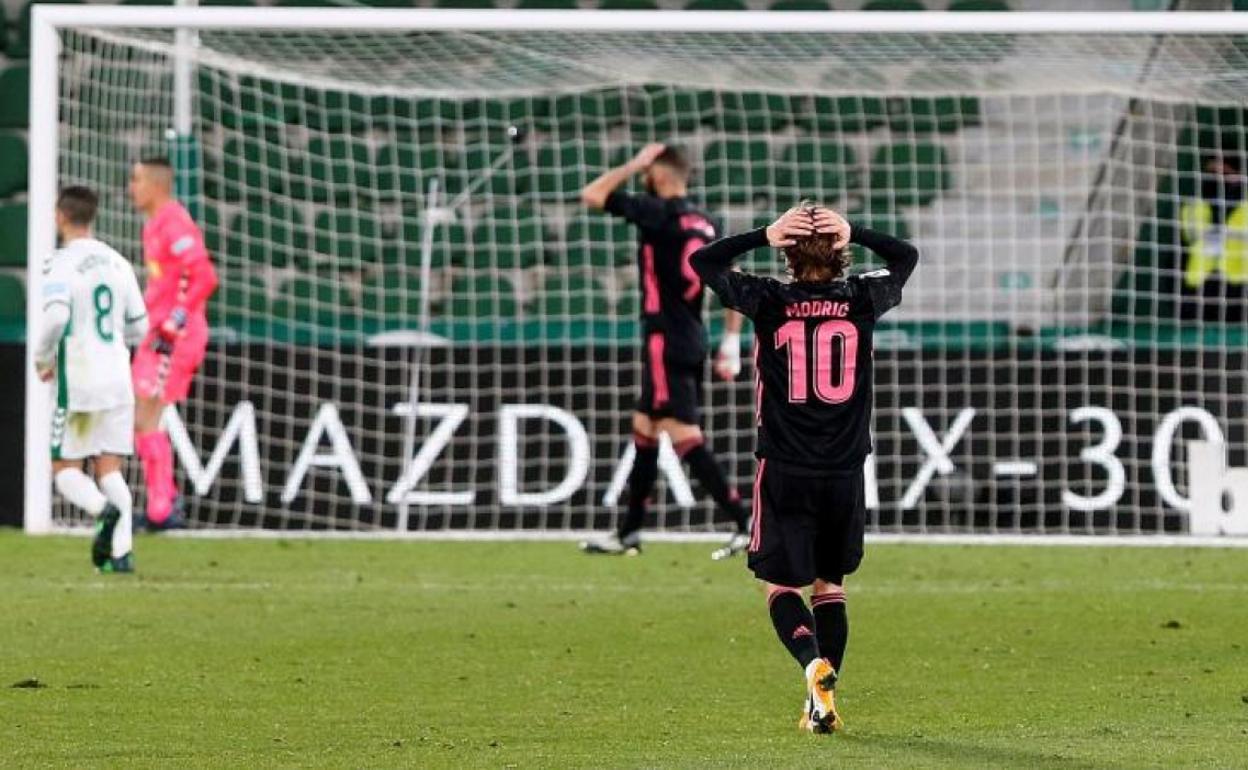 El Real Madrid cierra el año 2020 en el Martínez Valero, ante el Elche, en un duelo marcado por dos regresos. Uno, el de Luka Modric, tras una efímera ausencia de un solo partido por una sobrecarga muscular, frente al Granada en el Di Stéfano, el primero que se perdía el centrocampista croata en toda la temporada, pero más que suficiente para que su equipo lo echase de menos con un evidente atasco en el juego por momentos. Otro, el de Eden Hazard, esperado durante más tiempo, pues lleva un mes en el dique seco, desde que ante el Alavés tuviese que abandonar el césped por una dolencia en el muslo derecho.
