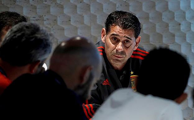 «Tenemos tiempo», dice con gesto calmado Fernando Hierro a los responsables de prensa durante un encuentro informativo con los medios escritos desplazados a Krasnodar. Sonríe aunque está cansado. No oculta que los tres primeros días apenas durmió un par de horas, porque «no encontraba horas para ver más vídeos de rivales y analizar cosas propias». Y es que llegó a Rusia «con traje y corbata», un trabajo diferente «al del chándal» y hereda un grupo hecho por Julen Lopetegui, «un íntimo amigo» al que le muestra «todos los respetos». El malagueño, «claro y honesto», sabe que es «seleccionador por circunstancias, no por mi crédito de entrenador». «No me puedo engañar. Con mi currículum como entrenador difícilmente podría ser seleccionador. Lo digo con el corazón. No es falsa humildad, sino realismo», asegura, aunque reconoce: «El año que estuve con el Oviedo me enriqueció mucho, fue fundamental. La toma de decisiones está en el día a día, sé que la gente me va a juzgar por lo que pase en los partidos».