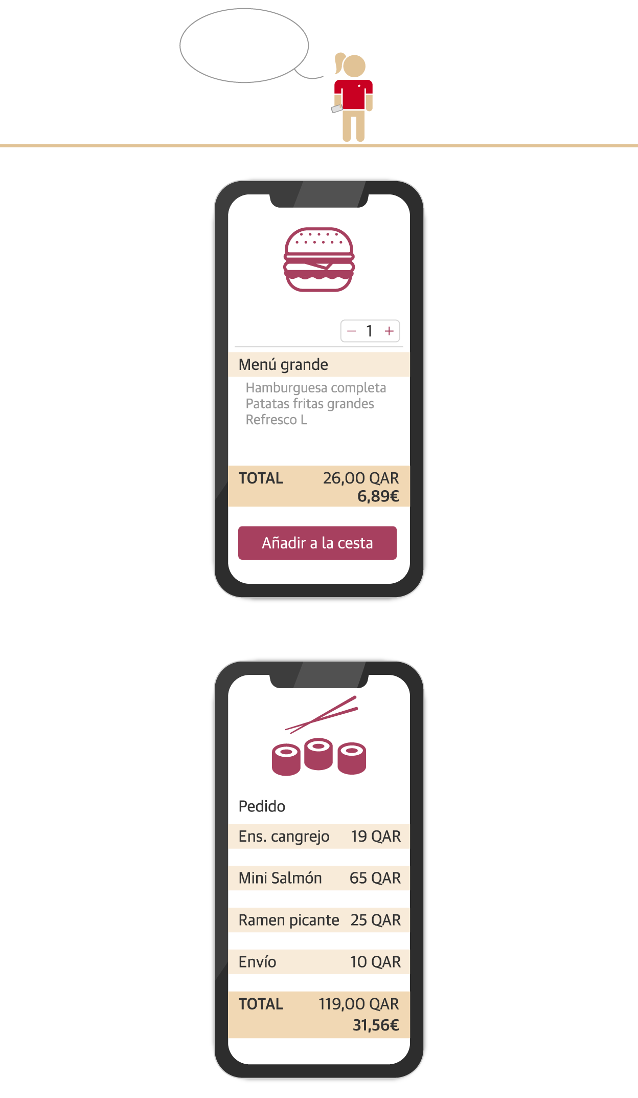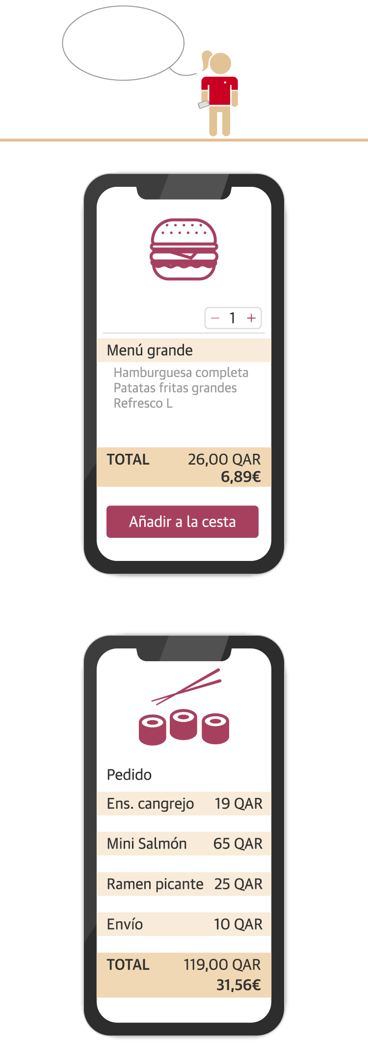 Una vez allí, tenemos que tener en cuenta el cambio de divisa. Un riyal catarí equivale a 26 o 27 céntimos de euro, aproximadamente. En este viaje simulado nos ayuda Anna, una amiga que lleva diez años viviendo en Doha.