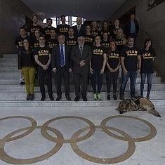 Varios deportistas de la UCAM posan en la sede del COE.