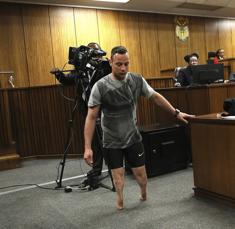 Vestido con un pantalón corto de ciclista y una camiseta, el campeón paraolímpico se levantó, se quitó las prótesis y anduvo sobre sus muñones por la sala del tribunal de Pretoria