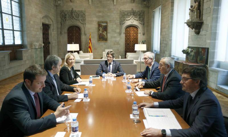 El presidente de la Generalitat, Carles Puigdemont, recibe al del COE, Alejandro Blanco.