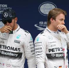El británico Lewis Hamilton (i) y el alemán Nico Rosberg.
