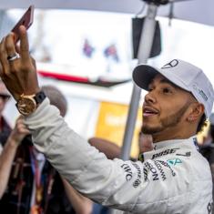Lewis Hamilton se hace un selfie.