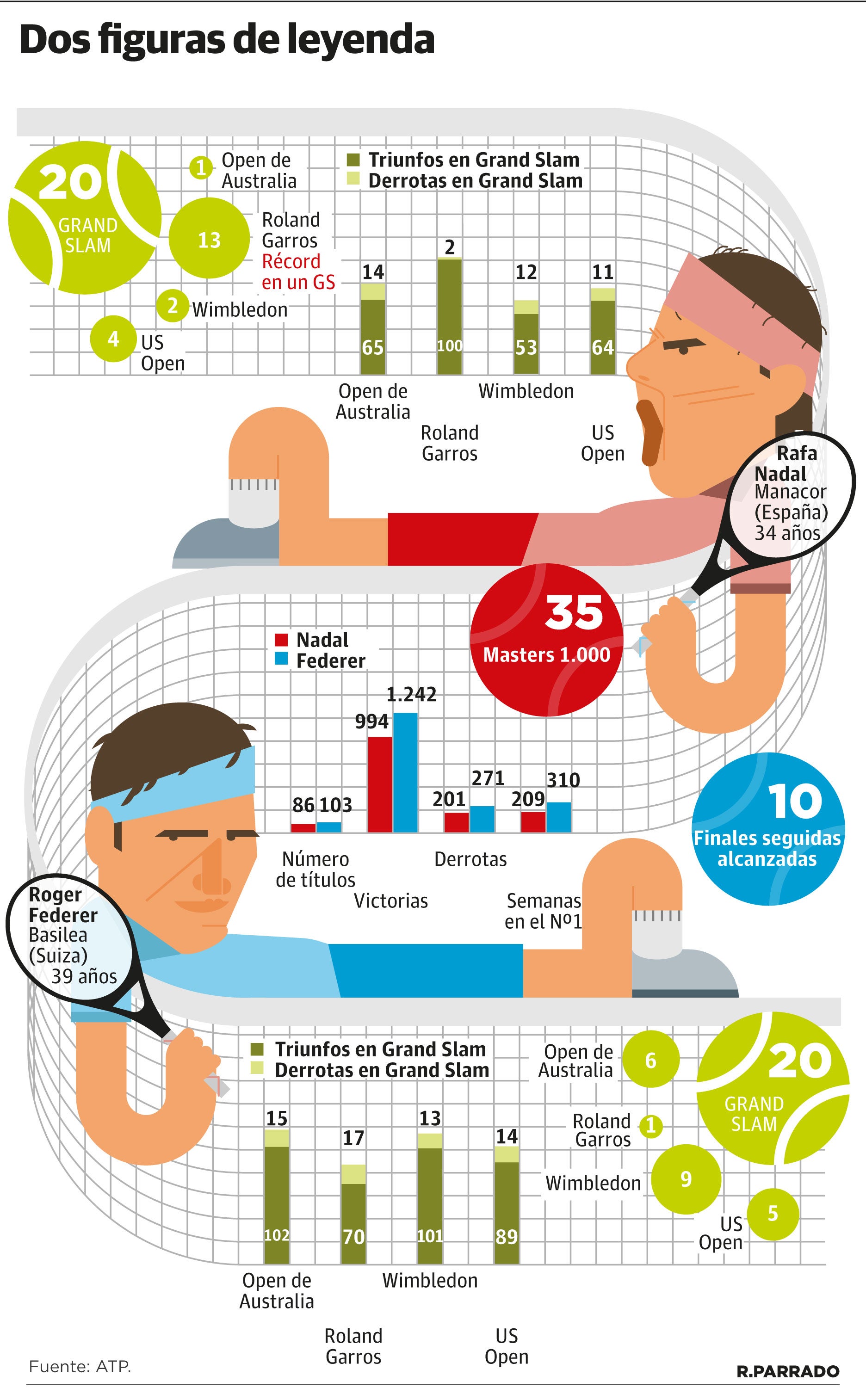Hace un par de años, tras una rueda de prensa de Rafa Nadal en Wimbledon, los periodistas españoles se sorprendían. «Creo que es la primera vez que Rafa admite que quiere igualar a Federer». Hasta ese momento el balear, que se encontraba a tres Grand Slams del suizo, siempre esquivaba la pregunta, mostrando poco interés por un criterio que siempre se ha utilizado para elevar a un tenista u otro como el mejor de todos los tiempos.