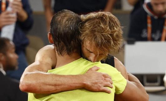 La expresion de seriedad de Nadal mientras su rival se retiraba a los vestuarios lo decía todo. Allí le consoló el trece veces campeón en París, antes de regresar a la pista. «Estoy muy triste, ha hecho un torneo increíble, sé lo mucho que está luchando para ganar un Grand Slam. He estado en el cuarto pequeño con Sascha, estaba llorando y ha sido duro», resumió a los aficionados de la Philippe Chatrier, en la que reinaba el ambiente de pesadumbre y tristeza por un cruel desenlace para un partido que prometía pasar al recuerdo.