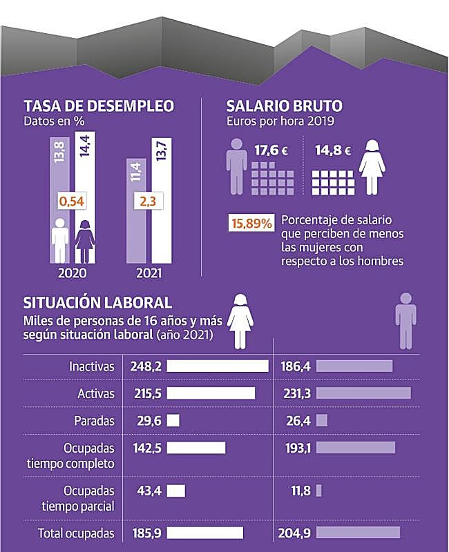Esos son algunos de los datos que ofrece el informe 'Asturias en cifras' que elabora para el Instituto Asturiano de la Mujer (IAM) María José Álvarez Martín, del Observatorio de Igualdad entre Mujeres y Hombres. Unos datos que dan mucho sentido al lema elegido por la ONU para el Día Internacional de la Mujer de este año: «Por un mundo digital inclusivo: Innovación y tecnología para la igualdad de género».