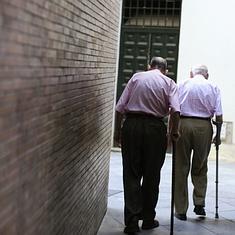 Dos pensionistas caminan por una calle de Sevilla.
