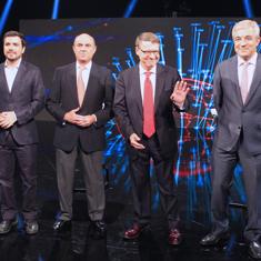 Garzón, Guindos, Sevilla y Garicano, antes del debate económico de la campaña electoral.