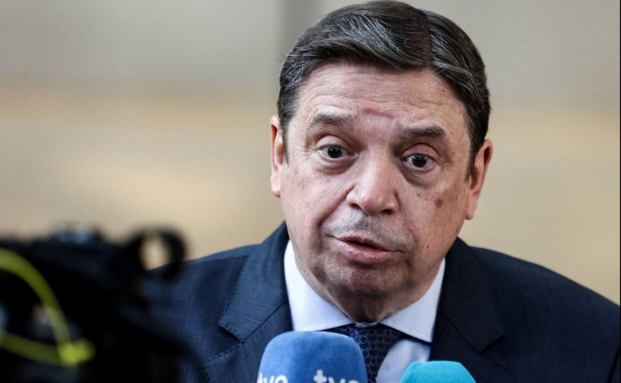 Luis Planas, ministro de Agricultura, a su llegada a Bruselas. AFP/Vídeo: Atlas