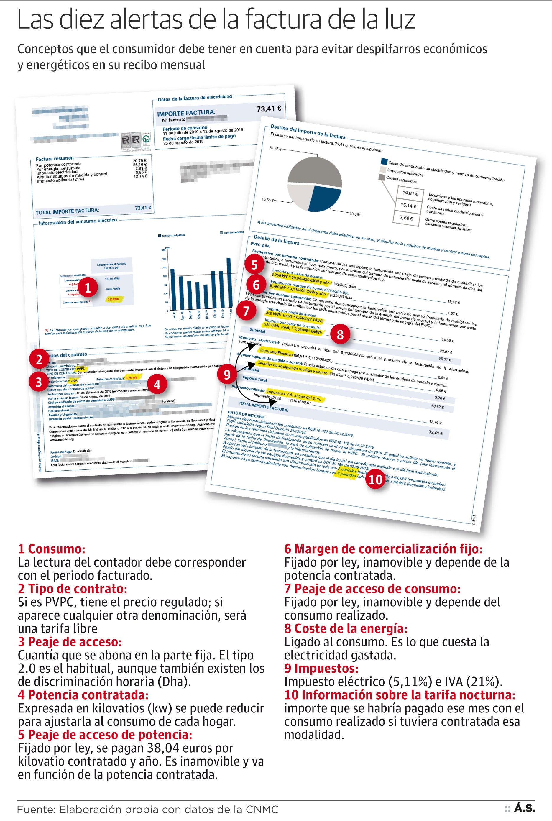 La parte de la factura sobre la que el consumidor sí tiene algo más de capacidad de decisión es la relativa al consumo de luz, pero solo representa un tercio de todo lo que se paga en el recibo. La CNMC ha propuesto seis grandes tramos horarios de precios (los más baratos, en las noches y madrugadas;los estables, a mediodía;y los más caros a última hora de la tarde). Pero en sus alegaciones a esta propuesta, la Asociación de Empresas de Energía Eléctrica (Aelec) –donde se integran Iberdrola, Endesa, Naturgy, Viesgo y EDP– ha pedido simplificar a tres los periodos horarios para los consumidores domésticos. Porque la idea de los seis tramos, indica la organización, supone «una elevada complejidad» a la que solo están adaptados los grandes clientes, como la industria, que ya se rige por este sistema horario.