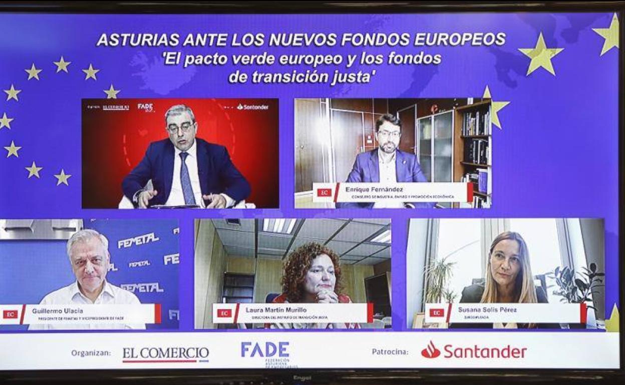 Atendiendo a los puntos de vista vertidos ayer durante la segunda sesión de las jornadas 'Asturias, ante los nuevos fondos europeos', organizadas por EL COMERCIO y Fade y patrocinadas por Banco Santander, el Principado sale desde una posición privilegiada en la carrera por los nuevos fondos de transición justa. Todas eran voces autorizadas, procedentes de la Administración regional, estatal, el empresariado y el Parlamento Europeo. «La cadena de valor de la industria asturiana aporta una puesta a punto para la transición energética mejor que en otros lugares», afirmó la directora del Instituto para la Transición Justa, Laura Martín. Este optimismo del Gobierno central fue respaldado desde el autonómico. El consejero de Industria, Enrique Fernández, señaló que «es justo que ahora se reconozca el esfuerzo importante que se ha hecho en estos años y que ha supuesto un desgarro importante en la región». De hecho, para Guillermo Ulacia, presidente de Femetal y vicepresidente de Fade, es ese bagaje el que nos permite, por ejemplo, «convertirnos en una referencia europea en economía circular y en nuevos modelos de negocio». A la espera de que las ayudas estén disponibles, la eurodiputada asturiana de Ciudadanos, Susana Solís, cree que «si se usa bien podrá convertir a la región en una potencia industrial y energética que cree empleos estables y de calidad». Ese salto de las palabras a los hechos era resumido por el director del diario EL COMERCIO, Marcelino Gutiérrez, como el «mayor desafío que afronta Asturias, con una paulatina reducción de las emisiones que abran paso a una nueva era industrial y una economía más sostenible».