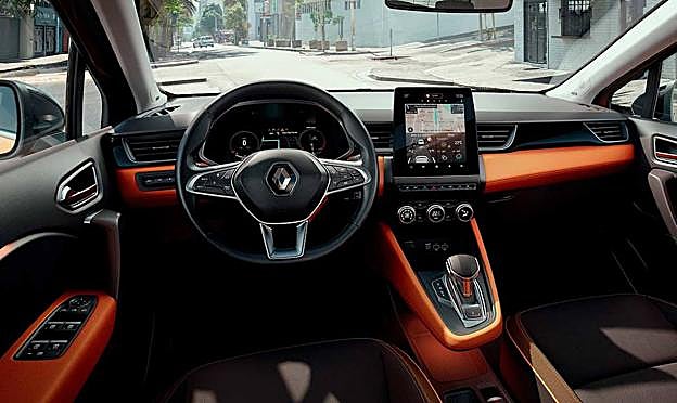 En el interior una gran pantalla tipo tablet orientada al conductor recoge toda la información multimedia y de conectividad, repitiendo en teclas tipo piano de rápida activación las funciones más frecuentes. El salpicadero es personalizable y se incluyen 8 ambientes luminosos. La consola central es flotante y dispone de espacio bajo la misma. El interior del Captur cuenta con un total de 27 litros en espacio portaobjetos.