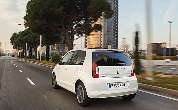 El Skoda Citigo iV es el primer modelo 100% eléctrico fabricado en los 125 años de historia de la marca. Se mueve mediante una batería de iones de litio de 38,6 kWh. que equivalen a 83 CV. y dispone de una autonomía de 253 kilómetros. Su precio es de 17.900 euros.