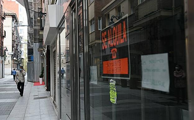 Una mujer camina frente a una tienda cerrada por las restricciones en Bilbao. J. Alemany