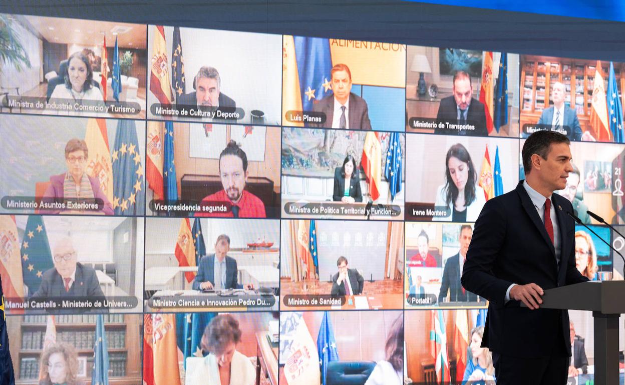 El Palacio de la Moncloa ha servido como escenario para la puesta de largo del plan, en un acto al que estaban conectados 200 invitados por videoconferencia (todos los ministros del gabinete, empresarios de firmas del Ibex-35, sindicatos y otros agentes sociales). Al discurso de Sánchez le precedió la intervención musical del pianista James Rhodes, quien interpretó el 'Himno de la Alegría' desde su casa.