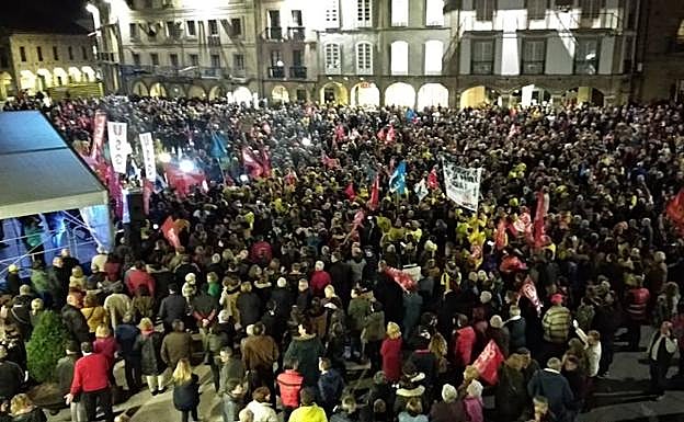 Ante el Ayuntamiento, miles de manifestantes fueron llegando a la plaza sumándose a otros tantos que ya esperaban desde el inicio de la marcha. En las vías de acceso, numerosas personas no pudieron asistir a la lectura del manifiesto ante la gran aglomeración de manifestantes que se agolpaban frente al escenario principal. Según cálculos de la organización, la convocatoria reunió a 50.000 personas. En ese contexto, el exjefe de Redacción de LA VOZ DE AVILÉS, José María Urbano, fue el encargado de leer el manifiesto de la convocatoria.