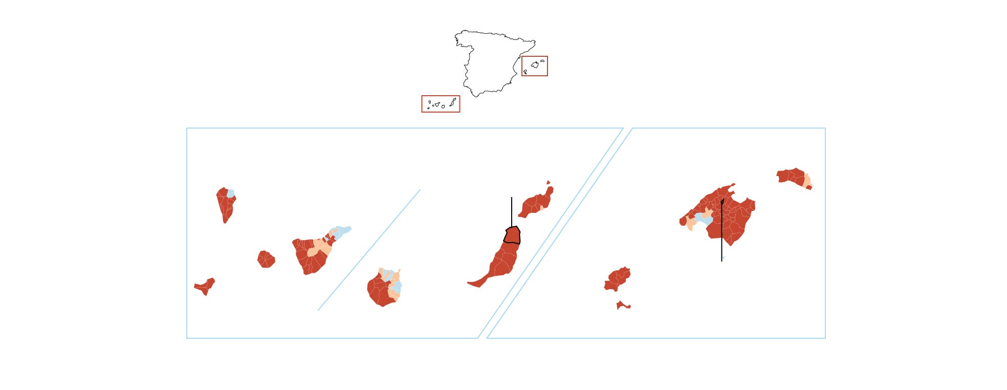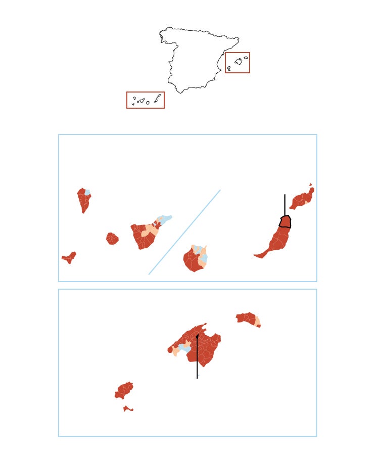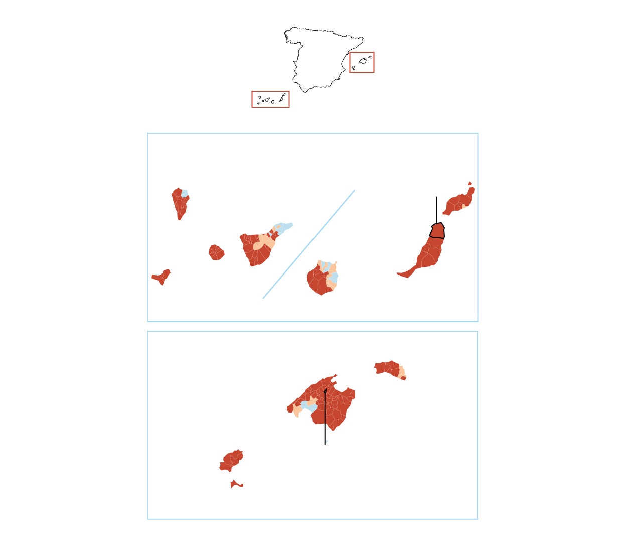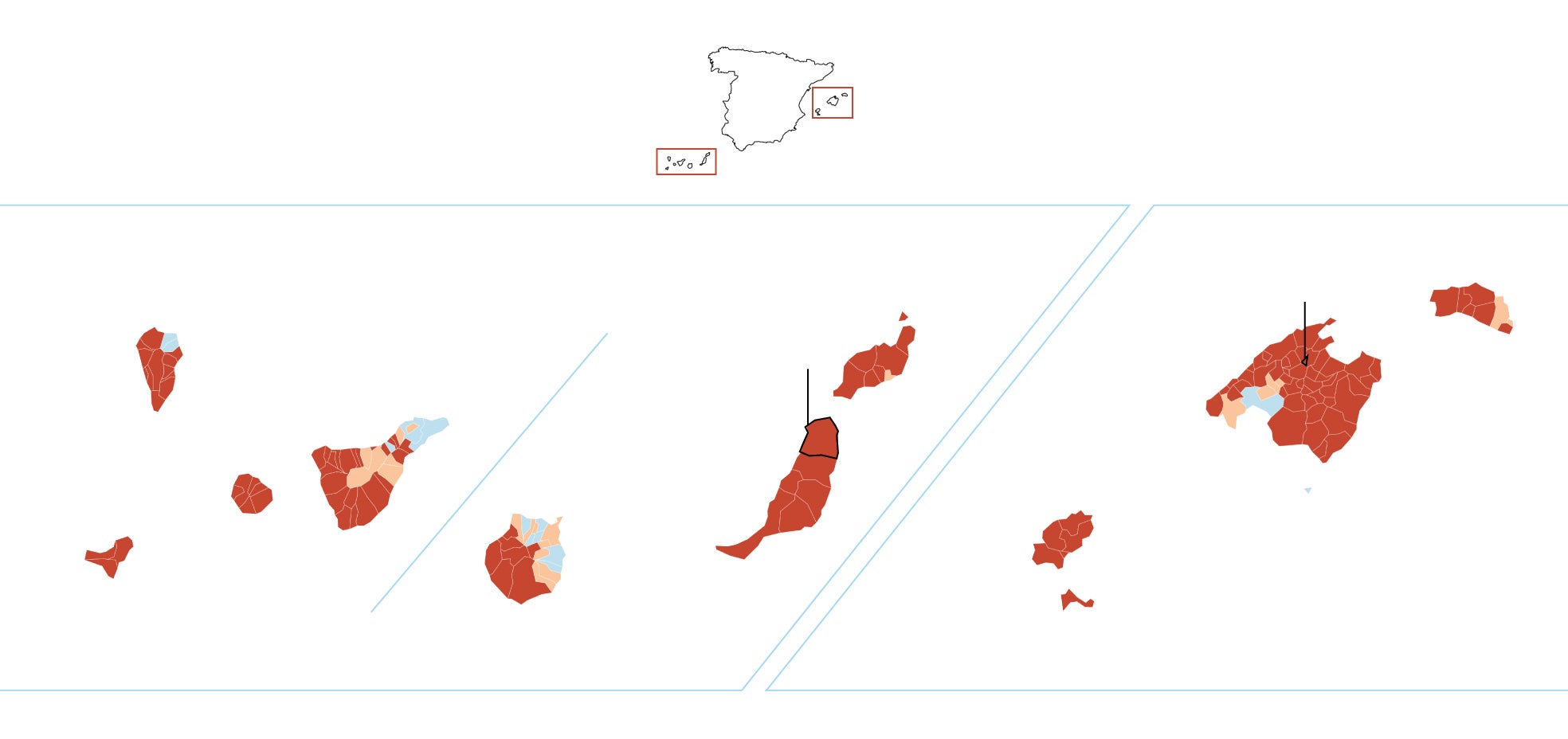 El problema son esos 70 municipios donde la vivienda turística representa un alto porcentaje del total, nueve de ellos por encima del 20%. Los cuatro más tensionados son Sales de Llierca (Girona), La Oliva (isla de Fuerteventura), Búger (Mallorca) y Ariany (Mallorca), donde al menos una de cada cuatro viviendas censadas están destinadas a vivienda turística. Destaca el hecho de que tres de estos cuatro municipios están en las islas.