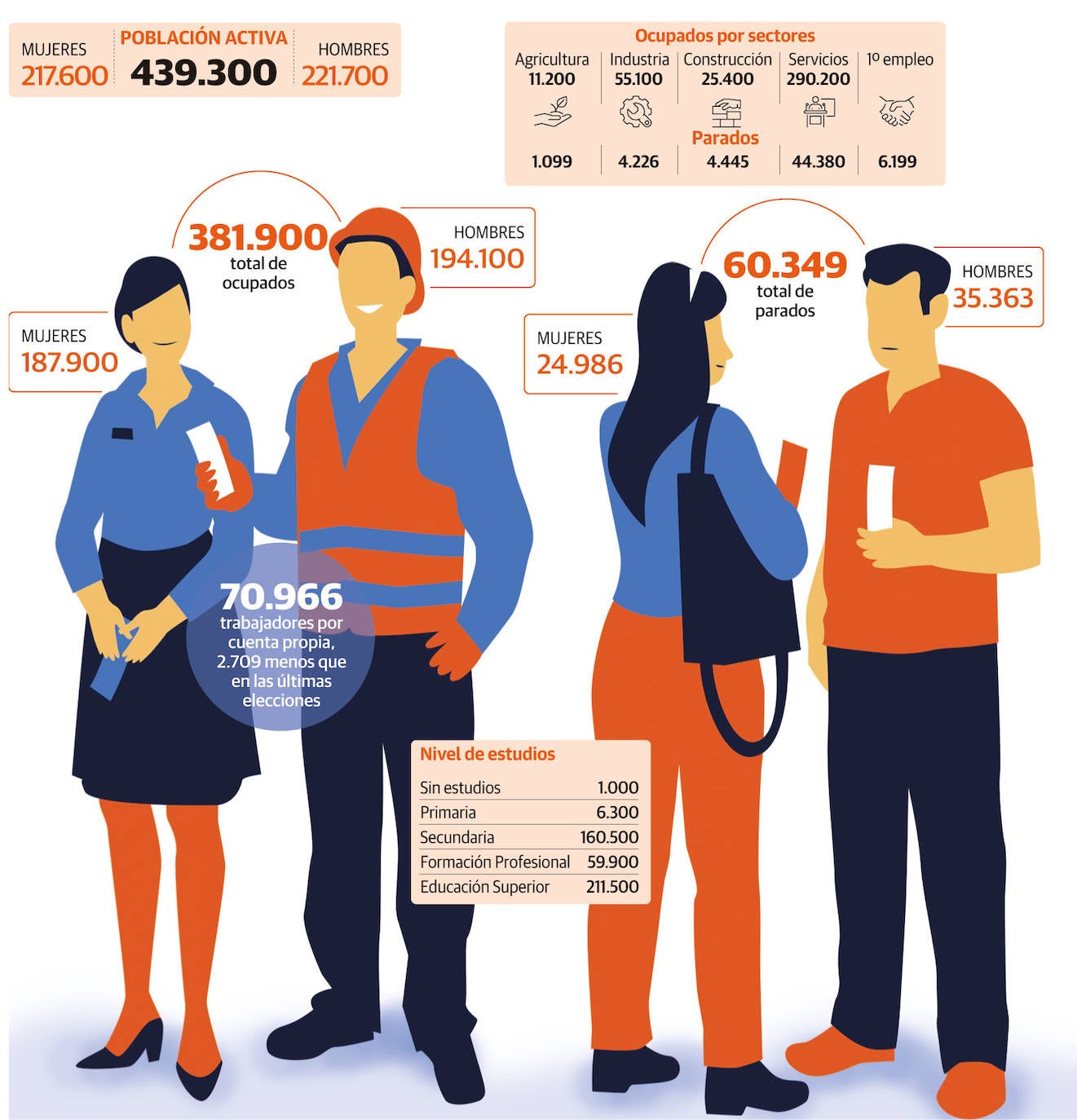 Por el momento, quienes podrán votar hoy en las 1.559 urnas instaladas por toda Asturias son un conjunto de electores marcados por varios aspectos. Uno, que es el electorado más envejecido de toda España, comunidad autónoma por comunidad autónoma. También es la región en la que la población activa tiene un nivel más bajo, ligeramente ya por debajo del 50%, mientras que casi uno de cada tres asturianos vive con una pensión, de las que más de 182.000 son jubilados.