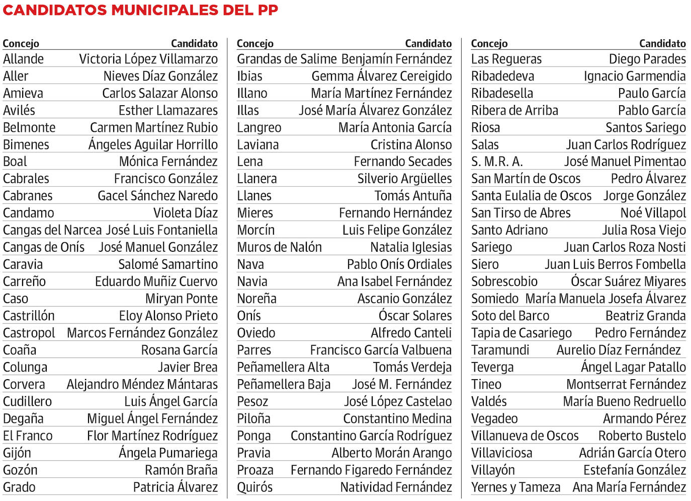 La foto de los candidatos, reunidos ante los aplausos de los expresidentes del PP Isidro Fernández Rozada, Mercedes Fernández y Teresa Mallada y los recién incorporados de Ciudadanos «es la que temen Barbón y Sánchez», señaló Álvaro Queipo, secretario general del PP regional. Advirtió contra el riesgo de que los socialistas gobiernen con Podemos, «un partido que se 'escrachea' a sí mismo y no tendría problema en 'escrachear' a los asturianos». El PP es «el partido del cambio. Que nadie nos quite ese título».