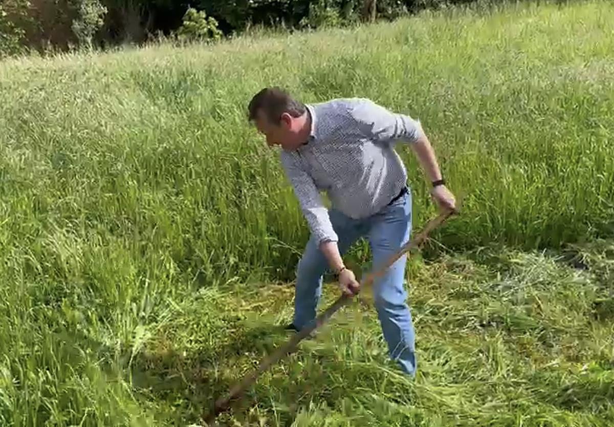El presidente de la Junta General del Principado se encontraba repartiendo propaganda electoral en Posada de Rengos cuando cambió las papeletas por una guadaña