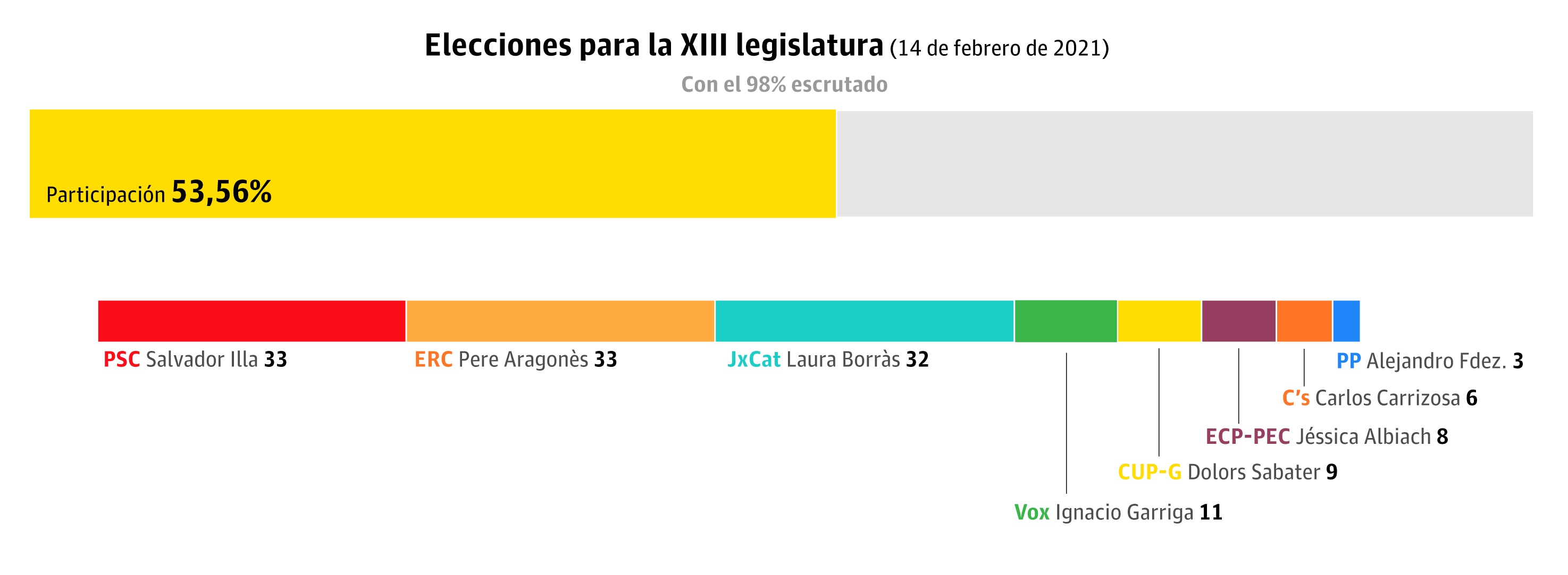 El dato de abstención de estas elecciones marcará el inicio de la XIII legislatura en Cataluña, con un Salvador Illa (PSC) ganador pero que dependerá de Pere Aragonès (ERC), el único que tiene la llave para gobernar.
