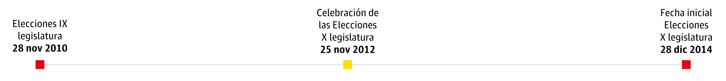 25 de septiembre de 2012: Artur Mas, que gobierna con el apoyo del PP, decide adelantar dos años las elecciones para abrir un proceso de autodeterminación. Trata de capitalizar el rechazo de Rajoy al pacto fiscal.