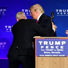 El aspirante republicano a la Casa Blanca, Donald Trump, tuvo que salir escoltado del escenario por agentes del Servicio Secreto el sábado durante un acto de campaña en Reno (Nevada), a causa una falsa alarma. El multimillonario reapareció minutos después ante la algarabía de sus partidarios declarando: "Nadie dijo que sería fácil para nosotros, quiero dar las gracias al Servicio Secreto".