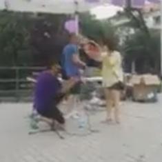 Un hombre sorprende a su pareja pidiéndole matrimonio en el inicio de la campaña de Unidos Podemos en Getafe
