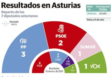 Sumar se consolidó este domingo como la tercera fuerza más votada en Asturias y contribuyó de forma notable a que el bloque de la ... izquierda (PSOE y Sumar) superara en votos al de la derecha (PP y Vox). La valoración en términos generales es por ello positiva puesto que, pese al complicado reparto parlamentario y la amenaza de bloqueo, el partido que lidera Yolanda Díaz entiende que se ha puesto freno a la «amenaza de la involución». A partir de ahí, desde Izquierda Unida de Asturias se llama a la reflexión ante la victoria del PP tanto a nivel autonómico como nacional ya que, en palabras de Alejandro Suárez, secretario de estrategia política de IU Asturias, supone un «segundo aviso» para la izquierda asturiana. «Debe tomarse nota de los resultados porque el PP ha demostrado que es una alternativa real y ante esto es importante hacer frente a la derecha con un Gobierno fuerte, progresista y reformista», subraya. «No se puede obviar la fuerza del PP y a la izquierda le toca afianzar el cambio», añade el dirigente de IU, quien destaca también que Convocatoria por Asturias -coalición bajo la que se presentaron IU, Más País e Izquierda Asturiana a los comicios autonómicos de mayo- fue un «pilar importante» sobre el que se construyó en Asturias el proyecto de Sumar -al que se sumó también Podemos- y que toca ahora «consolidar».