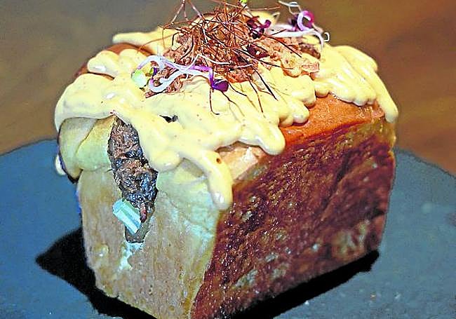 En Mamaguaja, el brioche viaja al universo marino. Alberto Velasco, chef del restaurante gijonés, lo rellena de bugre, salsa tártara y mahonesa agripicante o de langostinos con salsa lobster roll en una propuesta alternativa.