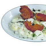 - Ponemos a cocer las patatas con piel. Cuando estén tiernas, las retiramos y la pelamos. Hacemos un puré con ellas y añadimos huevos, harina y sal. Cuando adquieran consistencia, formamos unas bolitas con el ayuda de los dedos.