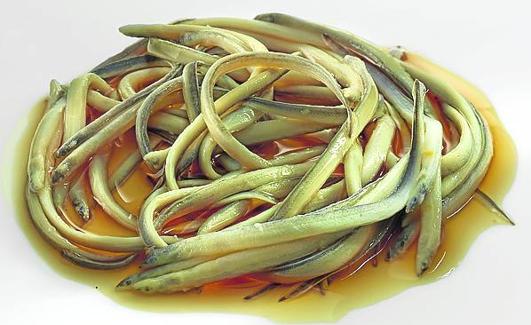 Angulas con fondo de nécora