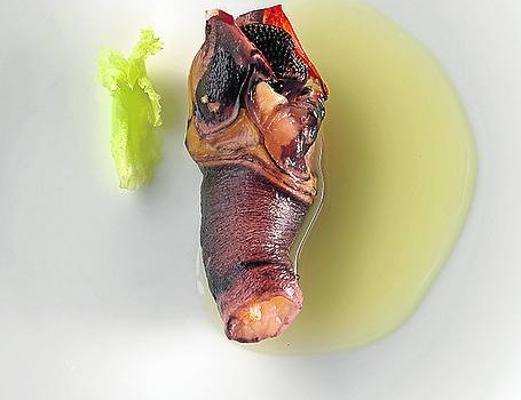 El menú ideado comienza con percebes a la brasa, caldo de maíz y corazón de lechuga, toda una declaración de estilo y antesala de lo vendrá. La huerta, entendida como zanahorias, nabos, puerros, apionabo, cebolla, cebolletas y ajo, sirve de base al ingrediente principal, uno de los favoritos atemporales de fin de año.