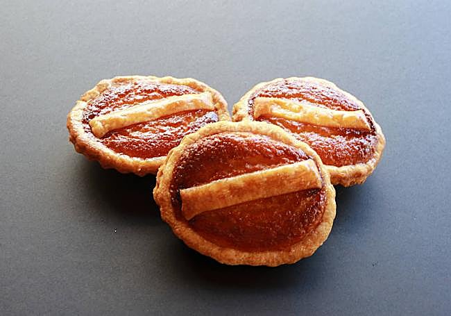 Primero, se hace una tartaleta de hojaldre. Se muelen juntas almendra y azúcar y se añade huevo, vino blanco y agua hasta adquirir la textura deseada. Con la mezcla se rellena el hojaldre y se hornea entre 35 y 40 minutos a 215 grados. Por último, se emborrachan en almíbar elaborado con agua y azúcar y se añade una capa gelatina de manzana.