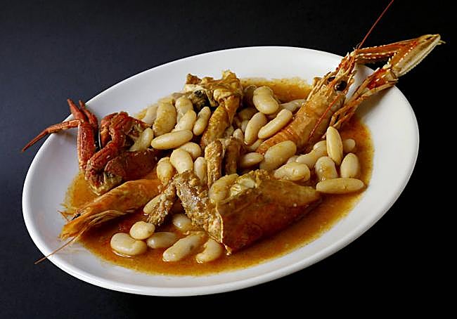 Ingredientes: 500 gr de fabas, 100 ml aceite de oliva virgen extra, 80gr de calabaza, 1 diente de ajo, 1 cebolla, perejil, 2 andaricas, ½ centollo, ½ ñocla, 4 langostinos, 4 cigalas, 4 almejas y sal