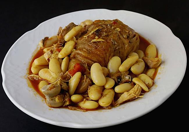 Ingredientes: Para las fabes: 1 kg de fabes, 1 cebolla, 1 hoja de laurel, 2 ajos, perejil, sal, un 'chorrín de aceite'. Para las kokotxas: ½ kg de kokotxas de bacalao, fumet de bacalao, 3 cucharadas de aceite de oliva, tres dientes de ajos, perejil