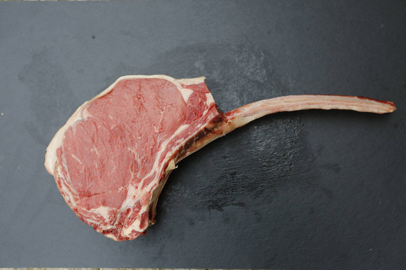 La chuleta es, junto al tomahawk, la parte más noble del vacuno. Procede del lomo alto y se lleva la fama de ser la parte más sabrosa del animal, con una mayor infiltración de grasa. Pesa en torno a 1,2 kilo. Se recomienda cocinar en torno a un minuto por cada centímetro de grosor de la pieza antes de darle la vuelta. No pasarse en la cocción es fundamental para que no pierda ternura y se seque.
