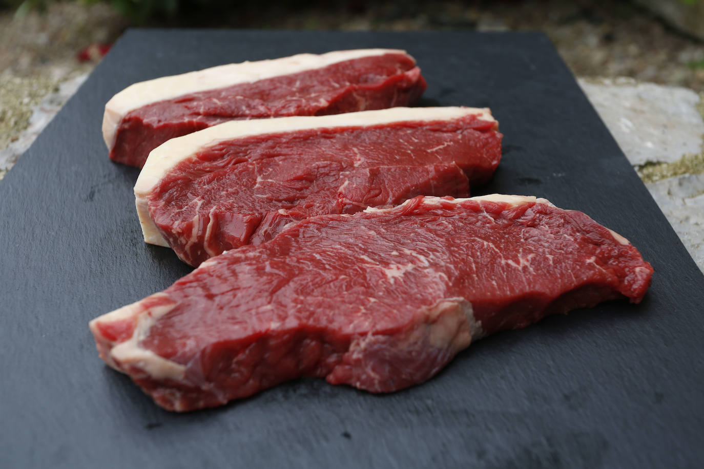 El Entrecot de Vacuno Mayor Asturiano sale del lomo bajo deshuesado. Tiene un color rojo oscuro, con una buena infiltración de grasa que le da más sabor y ternura, aunque es un poco más seco que el chuletón o el tomahawk. Es una carne jugosa, magra y con gran untuosidad que debería sellarse primero por el lado de la grasa para a continuación hacerse dándole la vuelta. Las piezas pesan en torno a 400 gramos.