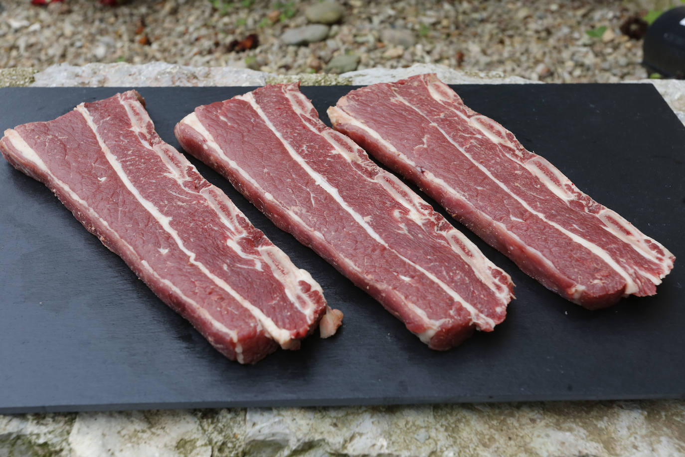 El costillar del ternero o de vacuno mayor cortado de forma transversal, en lugar de costilla a costilla. El éxito de esta pieza está en el intenso sabor de la carne pegada al hueso y la jugosidad de la grasa que desprende. Para obtener todo el potencial a la hora de cocinarlo, lo ideal es poner junto al fuego la parte ósea, de esta forma se va cocinando la carne superior lentamente, protegido por la carcasa de hueso. Este corte es típico en las barbacoas y, de hecho, en Argentina lo cocinan durante horas a baja temperatura, lo que contribuye a su terneza.