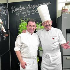 (Risas) No, los dos somos amigos de toda la vida; él es una persona a la que admiro tremendamente desde que era chaval y me hace una ilusión terrible estar con él en televisión. Karlos es de las pocas personas capaces de cocinar, hablar y hacer reír al mismo tiempo. Sigue con el mismo espíritu que tenía hace 30 años.