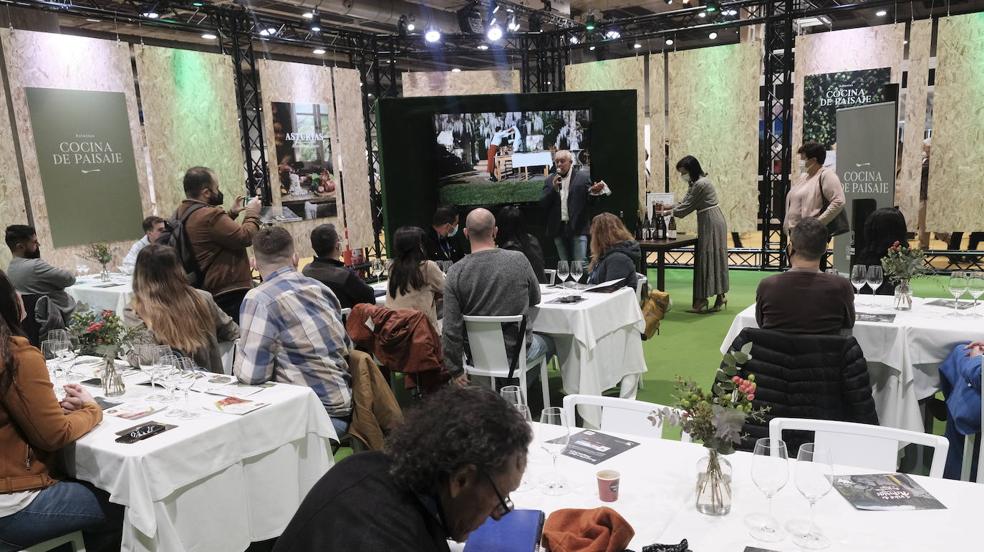 La batuta de la jornada inaugural la movieron los cocineros con estrella Michelin. En concreto, Marcos Morán e Isaac Loya exprimieron la despensa patria en el espacio gastronómico Asturias Cocina de Paisaje, un estand-restaurante de 150 metros cuadrados de superficie y aforo para 40 personas.