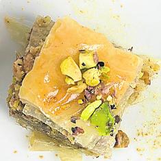 Calentamos la mantequilla en un cazo. Trituramos las nueces. Pintamos el fondo de una bandeja de horno con la mantequilla y colocamos dos hojas de masa filo.Pintamos y así hasta tener cuatro capas. Ponemos las nueces triturada s y repetimos la operación con la masa filo y la mantequilla. Realizamos cortes dejando 32 porciones. Metemos al horno a 180 grados durante 30 minutos. Mientras, calentamos el agua con el limón y el agua de azahar hasta formar un almíbar ligero. Sacamos del horno y pintamos con el almibar. Sirve de base para muchas más elaboraciones.