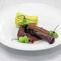 Cocer la manita con el manojo de hierbas, la cebolla y el tomate durante dos horas.Colamos e incorporamos las costillas adobadas. Las cocemos muy despacio durante dos horas y media. Las sacamos, las escurrimos y las embadurnamos con un poco de aceite de oliva. Las metemos al horno precalentado a 180 grados y asamos durante 20 minutos. Reducimos el caldo de cocción y a la hora de emplatar salseamos las costillas con él. Acompañamos de patatas fritas y ensalada.