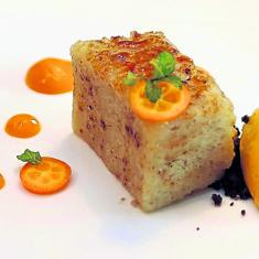 Para el helado calentamos una parte de la pulpa y diluimos todos los ingredientes.Llevamos a ebullición.apartamos del fuego y añadimos la otra parte de la pulpa. Emulsionamos y dejamos reposar 12 horas y pasar por la mantecadora. Presentar según fotografía.