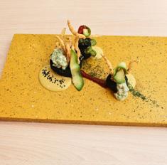 Por un lado cocemos las patatas y hacemos un puré que aliñamos con el zumo de lima y la tinta de calamar previamente cocida. Para hacer la huancaina trituramos la pasta de ají amarillo con la leche,las galletas y el queso hasta obtener una crema. Después freímos los trozos de chicharrón y de calamar y los aliñamos con zumo de limón y pasta de aji panca.