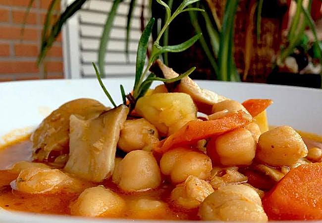 A los garbanzos con setas muchos los conocen como callos veganos porque la textura, salvando distancias, es similar a la mordida. Esta versión incorpora pimentón y salsa de tomate, por lo que el ojo también alimenta el sobrenombre. Sea cual sea la forma que eliges para denominarla, el resultado promete conquistarte