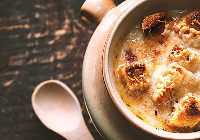 El origen de la sopa de cebolla se sitúa en Francia, país donde se popularizó por servirse en el mercado parisino de Les Halles a los noctámbulos que regresaban de una noche de fiesta. La receta se extendió por el mundo en el siglo XIX, aunque los registros históricos de su elaboración y propiedades viajan mucho más atrás y alcanza la Edad Media.